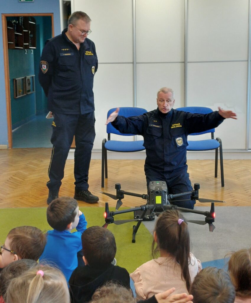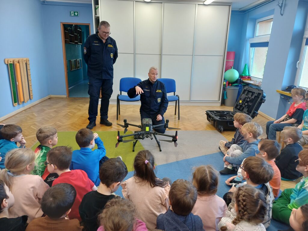 Dzieci mogły z bliska zobaczyć drona, który służy do kontroli jakości wydobywających się z kominów spalin. Oczywiście był on atrakcją spotkania. Na zakończenie zajęć wręczyliśmy książeczki edukacyjne zakupione przez Wydział Ochrony Środowiska Urzędu Miasta Jeleniej Góry.