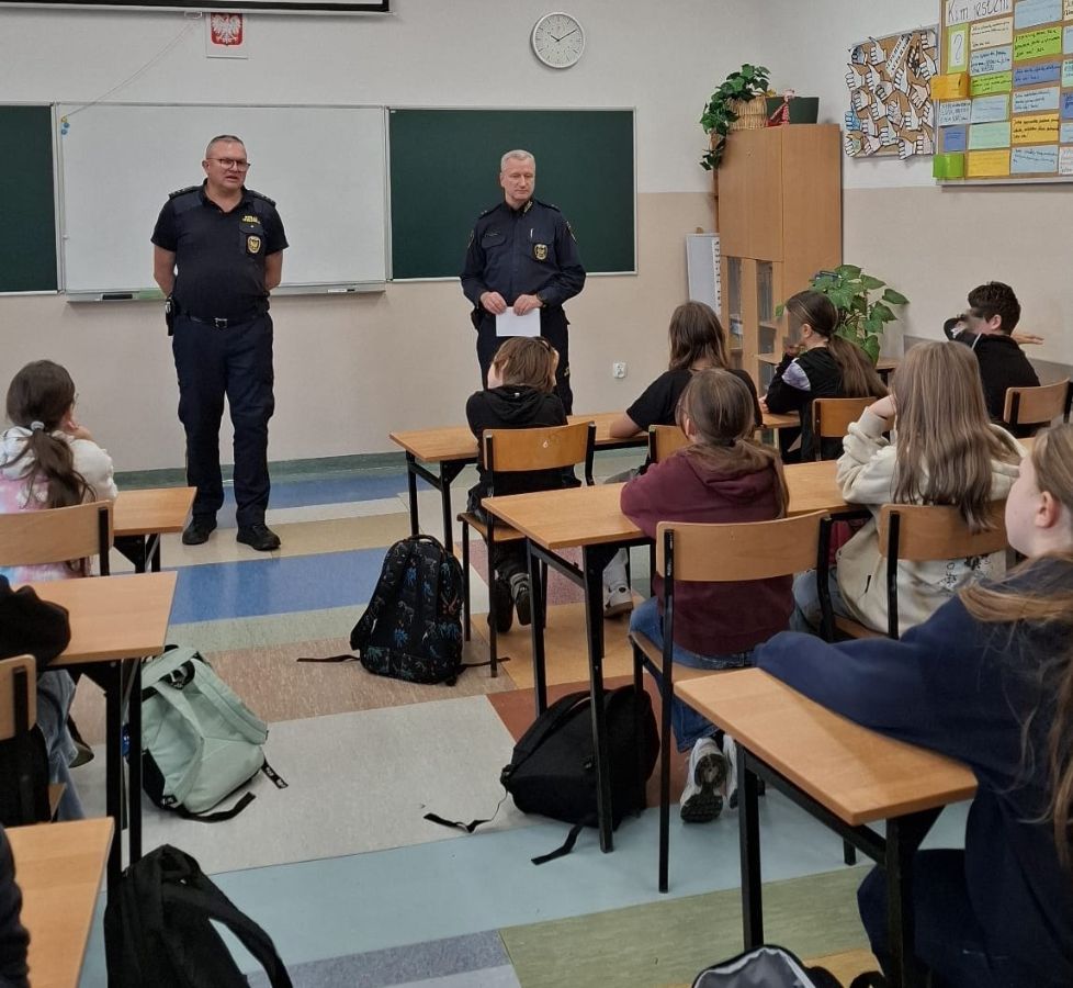 Na zaproszenie pedagoga i wychowawcy klasy VI Szkoły Podstawowej nr 10 w Jeleniej Górze st. insp. Jacek Dziedziński i kier. Oddziału Artur Chmielewski spotkali się z uczniami z którymi rozmawiali o demoralizacji i o ewentualnych konsekwencjach jakie może ponieść nieletni. Na wielu przykładach wytłumaczyliśmy uczniom to zagadnienie. Cieszy nas fakt czynnego udziału uczniów w naszym spotkaniu.